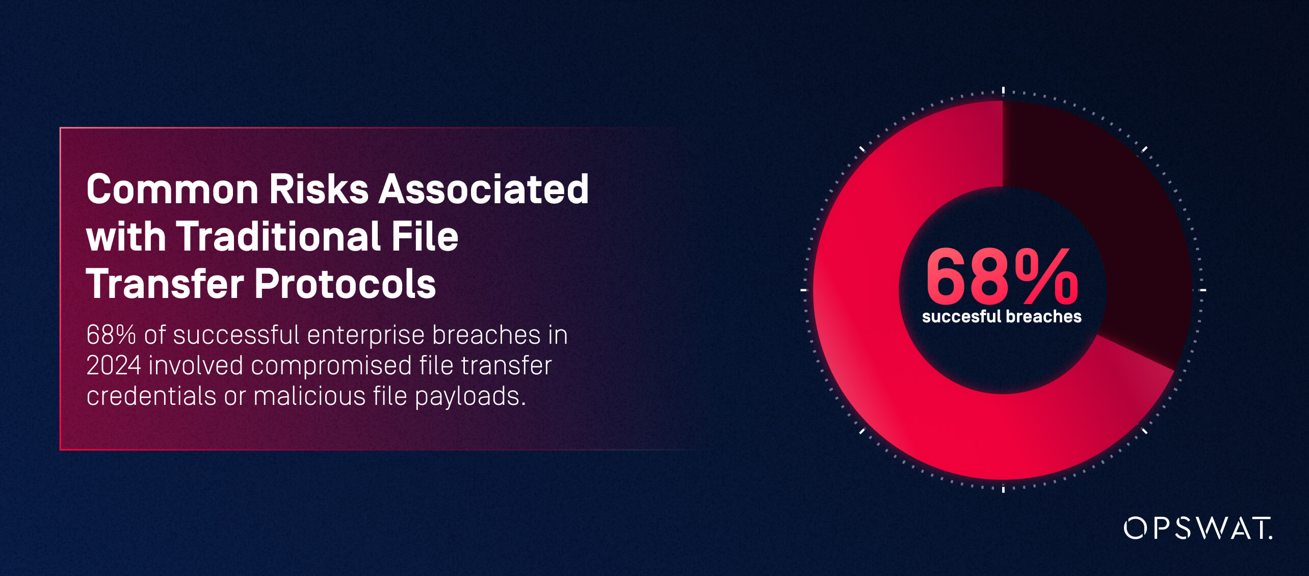 これらの脆弱性は、攻撃者がファイルベースのペイロード、認証情報の侵害、サプライチェーンへの侵入を利用して企業システムにアクセスする高リスク環境を生み出しています。最近の脅威インテリジェンスによれば、2024年に成功した企業侵害の68%は、侵害されたファイル転送認証情報や悪意のあるファイルペイロードが関与していました。