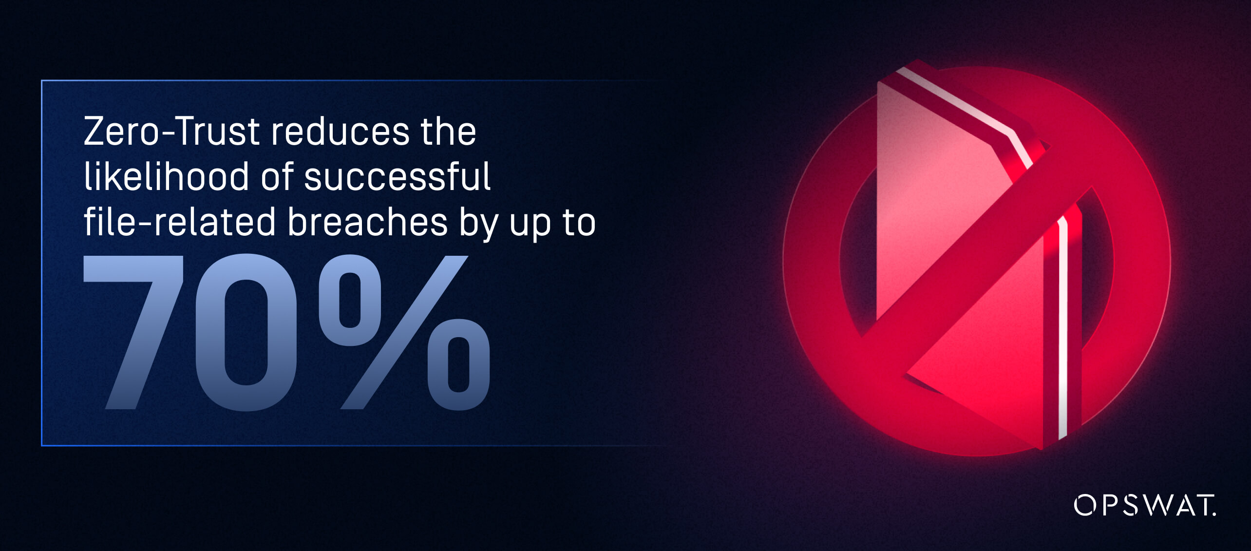 ゼロトラストは暗黙の信頼を排除し、ファイルレベルの検証を徹底することで、包括的なゼロトラストMFT を導入した組織によれば、ファイル関連の侵害成功率を最大70%削減すると同時に、データ漏洩インシデントやコンプライアンス違反の発生も減少させます。