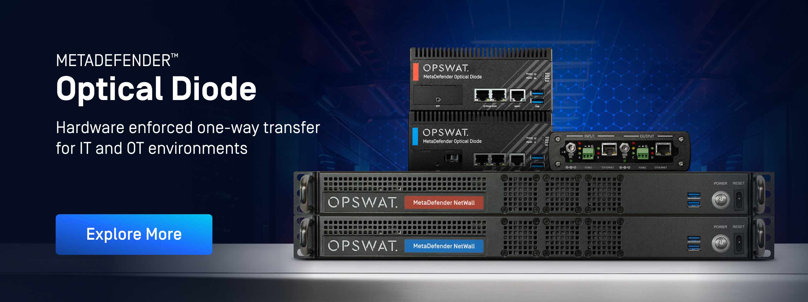 OPSWAT MetaDefender Optical Diode 、ネットワークの分離、データの完全性、規制遵守の最高基準を満たすように設計されており、重要なインフラや運用技術環境を標的とする現代のサイバー脅威に対する信頼できる防御を提供します。