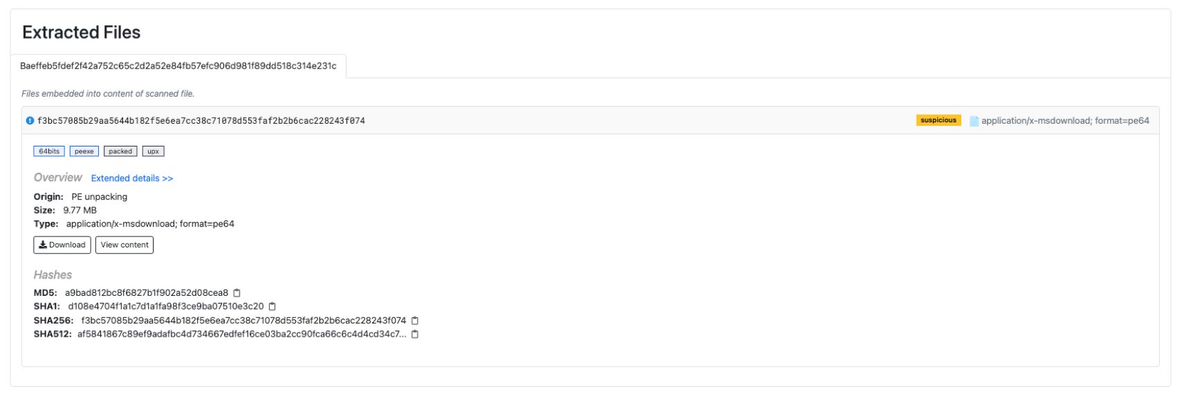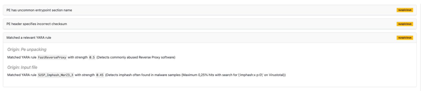 さらに、この同じ攻撃にはFast Reverse Proxyサンプルが使用されており、UPXパックされているにもかかわらず、MetaDefender Sandbox 、解凍されたファイルにいくつかの追加インジケータをマッチさせ、脅威を特定することができました。